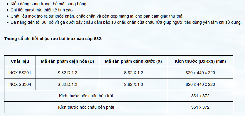 Xem thêm: Chậu rửa inox 304 Sơn Hà khác.