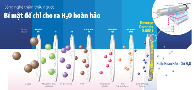 Để đáp ứng nguồn nước uống hằng ngày của chúng ta đảm bảo an toàn tuyệt đối, thì việc sử dụng máy lọc nước sử dụng công nghệ lọc thẩm thấu RO là biện pháp an toàn và hiệu quả nhất. Với màng lọc RO hoạt động dựa trên có chế chuyển động của các phân tử nước nhờ áp lực nén của máy bơm cao áp tạo ra dòng chảy mạnh đẩy các thành phẩn hóa học, kim loại nặng, vi khuẩn, vi sinh vật … chuyển động mạnh văng ra các vùng có áp lực thấp theo dòng nước qua đường nước thải, còn phân tử nước thì được lọc qua các mắt lọc có kích cỡ 0.0001micromet, với kích thước này hầu hết các thành phần tạp chất trong nước không thể lọt qua. Chính vì vậy mà nước qua màng lọc RO có độ an toàn tuyệt đối và chúng ta có thể sử dụng trực tiếp mà không cần phải đun sôi.